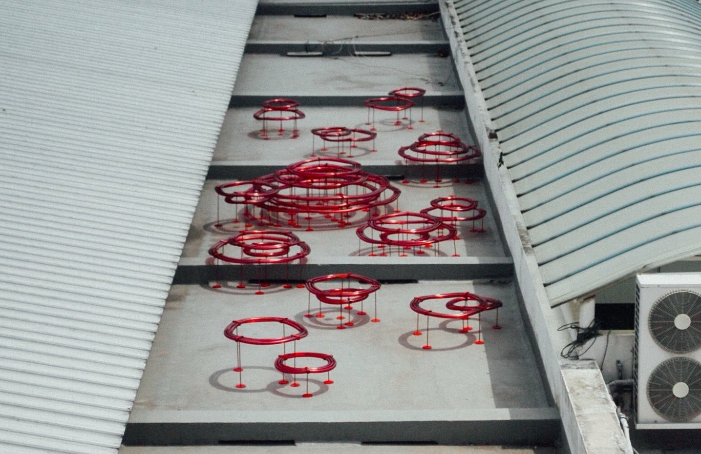 Oniishibozu Jigoku, Beppu’s mud pool so-called the hells of Beppu. It is a combination of the earth, water, and thermal heat. Its various and extraordinary rhythms and movement of the bubbling mud pool are being deconstructed and shown in this work.